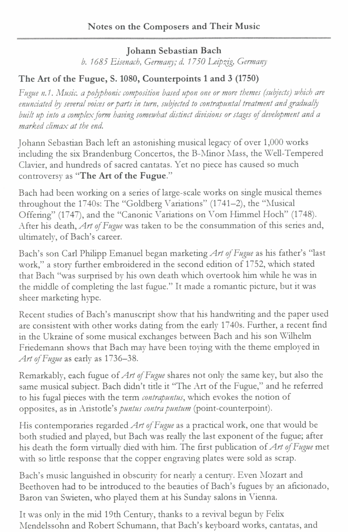 Program Notes